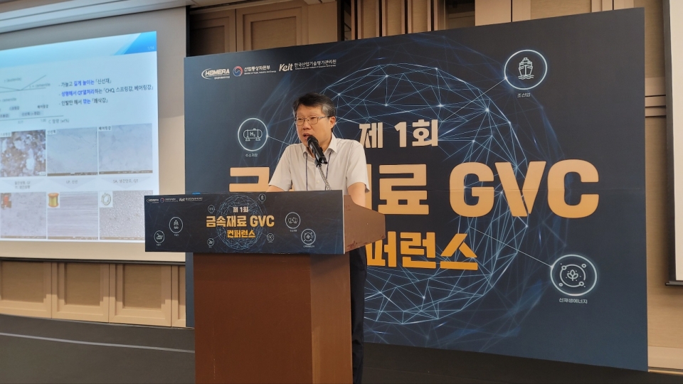 7월 18일 서울 삼성동 코엑스 컨퍼런스룸 E홀에서 열린 제1회 금속재료 GVC(Global Value Chain) 컨퍼런스에서 포스코 강재연구소 김관호 수석은 '탄소중립 기여 친환경 선재 제품 개발 현황'을 통해 포스코의 친환경 선재 제품을 알렸다.