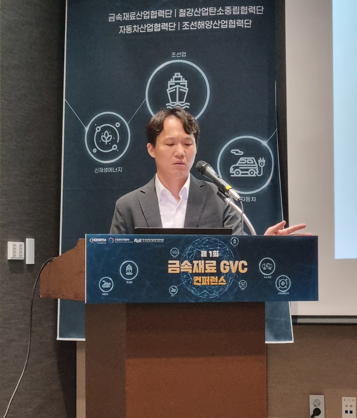 제1회 금속재료 GVC 컨퍼런스에서 ‘해상운송 화석 연료에 대한 시장 분석’이라는 주제로 강연하는 딜로이트 연경흠 이사