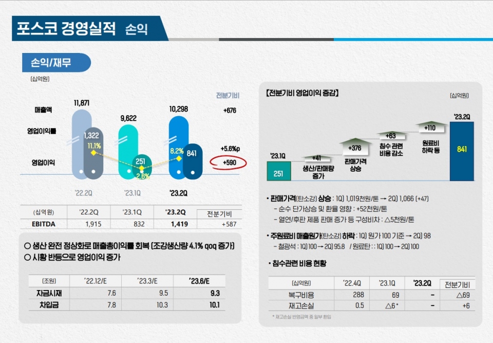 포스코는 7월 24일 2분기 IR을 통해 생산 완전 정상화로 매출총이익률을 회복한 가운데 시황 반등으로 영업이익 역시 증가했다고 강조했다. 키워드 #포스코 박진철 기자 jcpark@snmnews.com 다른 기사 보기 관련기사 (포스코 2분기 IR) 판매價 인상에 해외철강 영업益 개선 포스코그룹, 기업시민 경영이념 선포 5년…기업가치 3배 올려 저작권자 © 철강금속신문 무단전재 및 재배포 금지