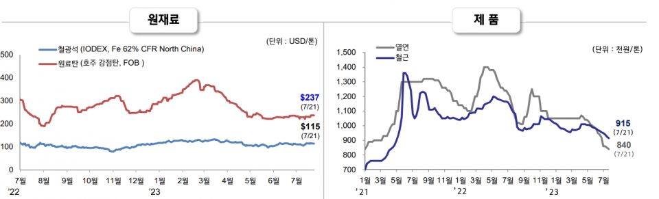 원료별로 철광석 가격은 중국의 철강 수요 감소에도 당국 경기부양책 기대로 보합세를 유지했으며, 원료탄은 호주 광산 공급 증가와 중국 수요 감소로 전반 약보합세를 나타냈다.