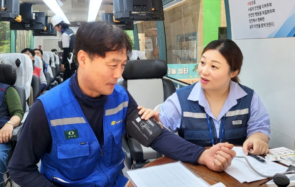이날 행사에서는 포스코이앤씨의 '찾아가는 안전 버스'를 활용해 사내 전문 간호사가 현장 근로자의 건강 상태를 점검하고 상담했다. 또 근골격계 질환 예방을 위한 저주파 치료와 함께 건강 마사지 등을 지원했다.