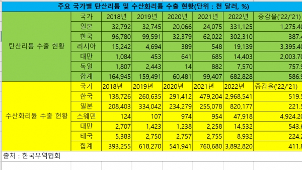 韓 중국산 리튬 최대 수입국, 전기차 확대에 수산화리튬 의존도 심화 우려