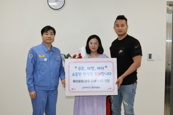 육아물품을 전달한 포항제철소 김대인 대외협력그룹장은 “저출산 이슈가 사회적으로 심각한 상황에서 세 쌍둥이 우주, 태양, 바다의 탄생은 매우 반가운 소식"이라며 "앞으로도 이런 반가운 소식들이 포항뿐만 아니라 곳곳에서 들릴 수 있도록 포스코도 더욱 관심을 갖고 노력하겠다" 고 전했다.