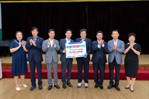 광양제철소가 광양 중마노인복지회관에서 4,000만원 상당의 지역 독거노인 지원 ‘마음이음 프로그램’ 사업비 전달식을 열었다.