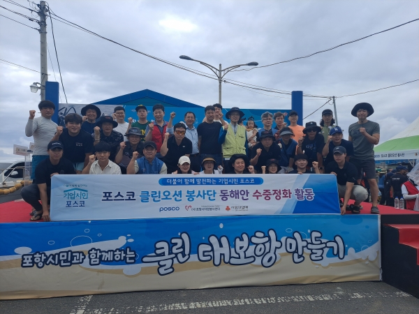 포스코 클린오션봉사단은 지난 2일 포항향토청년회가 주최하는 ’포항시민과 함께하는 클린 대보항 만들기‘ 행사에 참여했다. 봉사단원 전원이 전문 다이버 자격증을 갖고 있는 클린오션봉사단은 제철소가 있는 포항·광양 인근 바다를 포함한 해양 환경을 지키는 전문 봉사단이다.