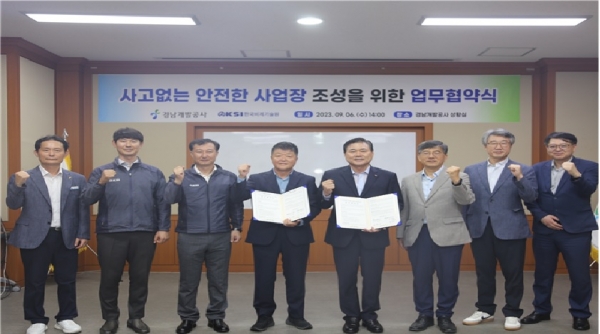 한국비계기술원과 경남개발공사는 사고 없는 안전한 사업장 조성을 위한 공동협력 업무협약을 체결하고 안전경영을 통한 도민중심 안전복지에 박차를 가한다.