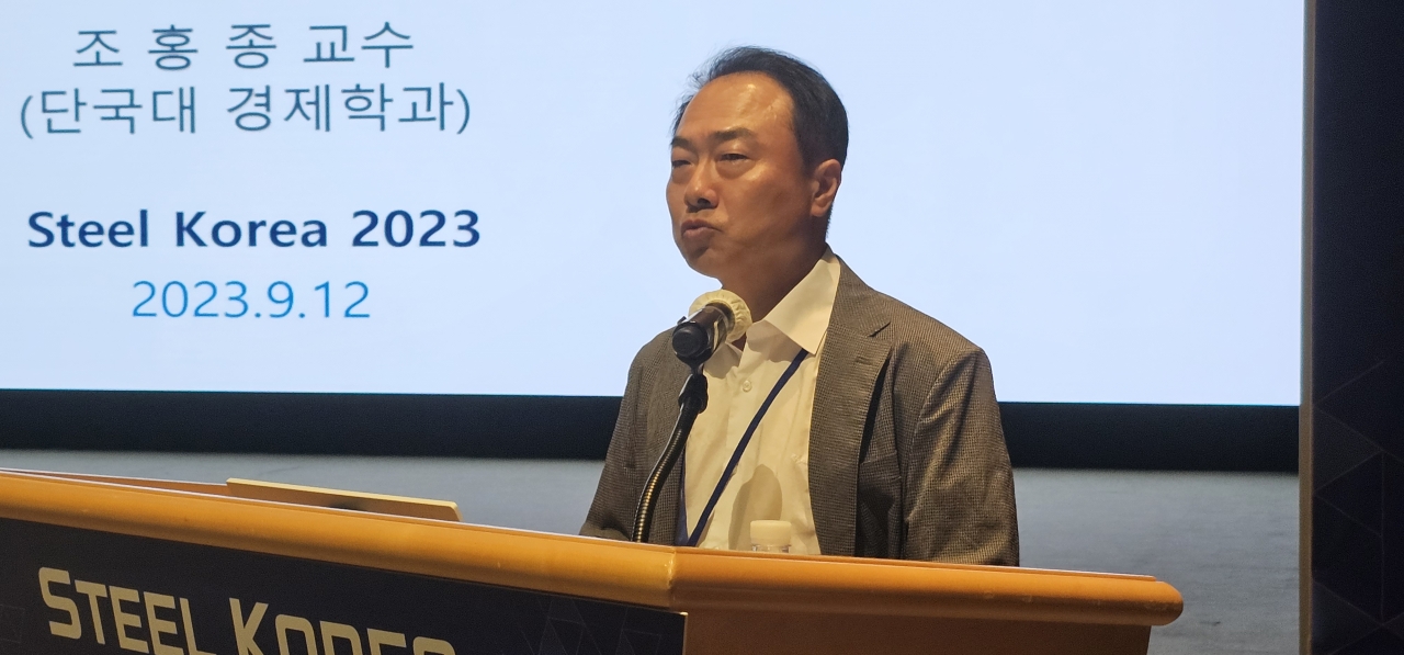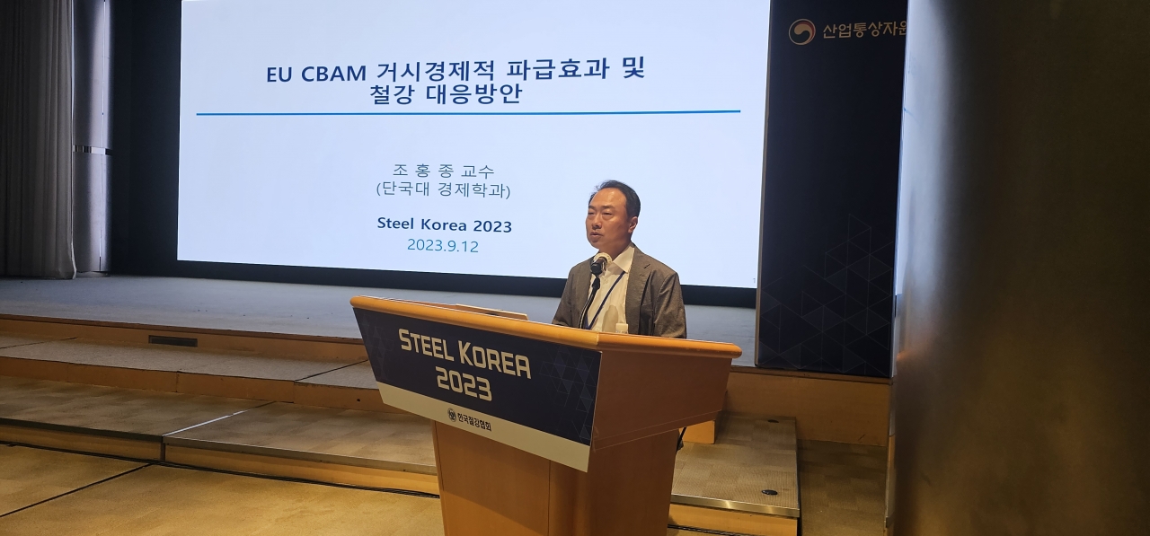 12일, 서울 포스코센터에서 ‘스틸코리아 2023(Steel KOREA)’가 개최됐다. 단국대학교 조홍종 교수는 세션1 글로벌 탄소중립 정책 동향 및 통상 트랜드에서 ‘EU CBAM 거시경제적 파급효과 및 철강 대응 방안’을 주제로 발표했다.