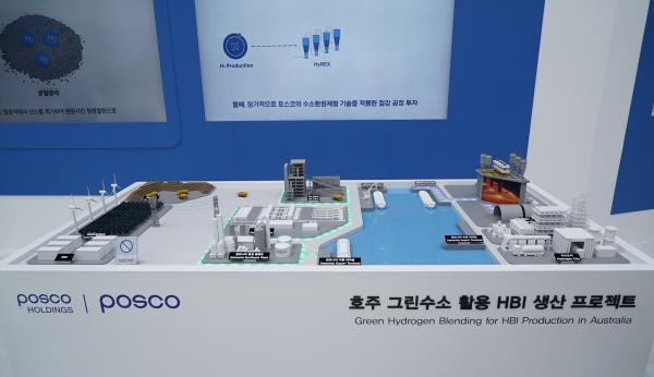 올해 첫 선을 보이는 HBI존에서 친환경 철강 원료인 HBI 연계 수소 프로젝트를 한눈에 확인할 수 있다. 호주는 철광석과 재생에너지 자원이 풍부한 전략 국가로, 포스코그룹은 호주에서 대규모 재생에너지를 활용해 그린수소를 생산하고 수소를 환원제로 사용하는 저탄소 철강 원료 HBI 를 생산한다는 계획이다. 현재 서호주에서 HBI 플랜트 건설 및 그린수소 생산 프로젝트를 동시에 추진 중이다.