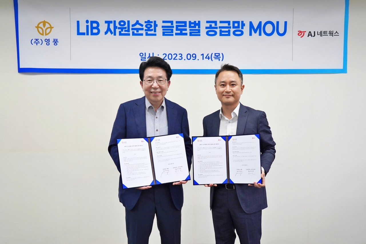 영풍은 지난 14일 AJ네트웍스와 「이차전지 자원순환 Global Value Chain 전략적 협업에 관한 양해각서(MOU)」를 체결했다고 15일 밝혔다.