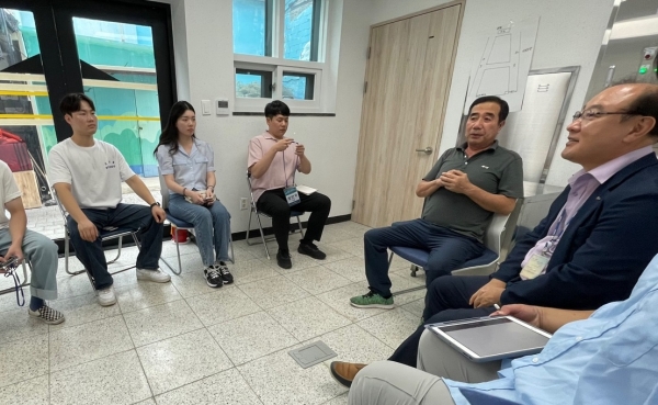 23-7차 교육생들이 '포항 영일대북부시장 활성화' 과제수행을 위해 이성관 영일대북부시장 상인회장(왼쪽에서 네번째)과 간담회를 진행하고 있다.