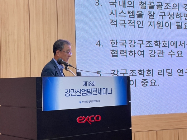 한국강조학회 이철호 회장은 한국철강협회 강관협의회가 대구 엑스코에서 개최한 강관산업발전세미나에서 '국내 건설용 강관 수요 확대 방안과 해외 사례'에 대해 발표했다.