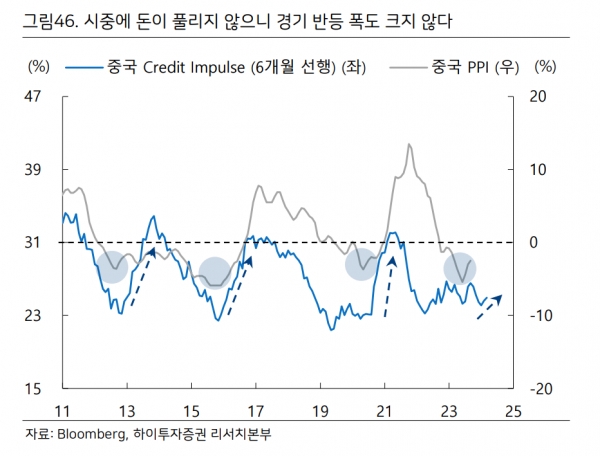 실제 중국 정부의 지속적인 유동성 완화 정책에도 경제 활성화 지표인 '크레디트 임펄스(사회총융자+지방정부채권발생)' 증가폭은 미미한 수준에 그친 상황이다.