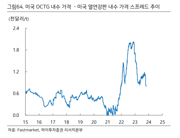 견조한 전방산업 수요와 함께 구조용강관(인프라)과 모노파일(신재생에너지)을 중심으로 호조가 예상되며 미국 내 OCTG 강관-열연강판 스프레드가 원만한 수급을 반영하고 있다.