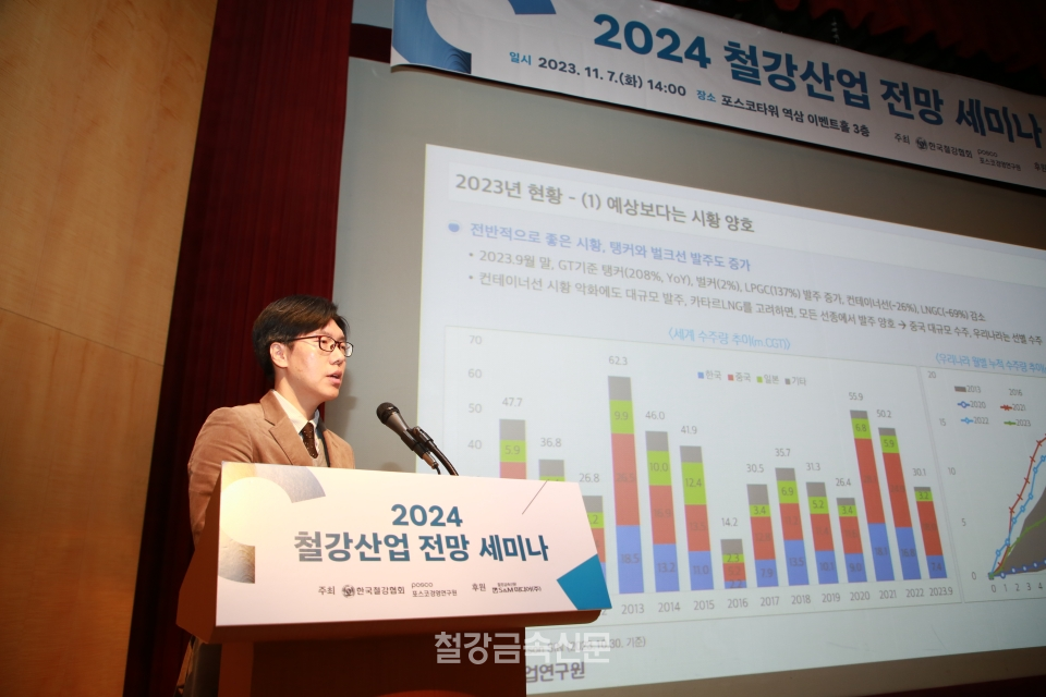 7일, 포스코타워 역삼 이벤트홀에서 한국철강협회와 포스코경영연구원가 주최하고 에스앤엠미디어(본지)가 후원하는 ‘2024철강산업 전망 세미나’가 개최됐다.