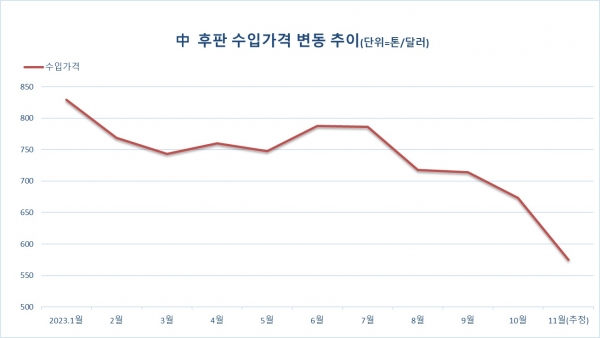7월 이후 중국산 수입價 폭락 수준…11월 이후 500달러대까지 떨어진다