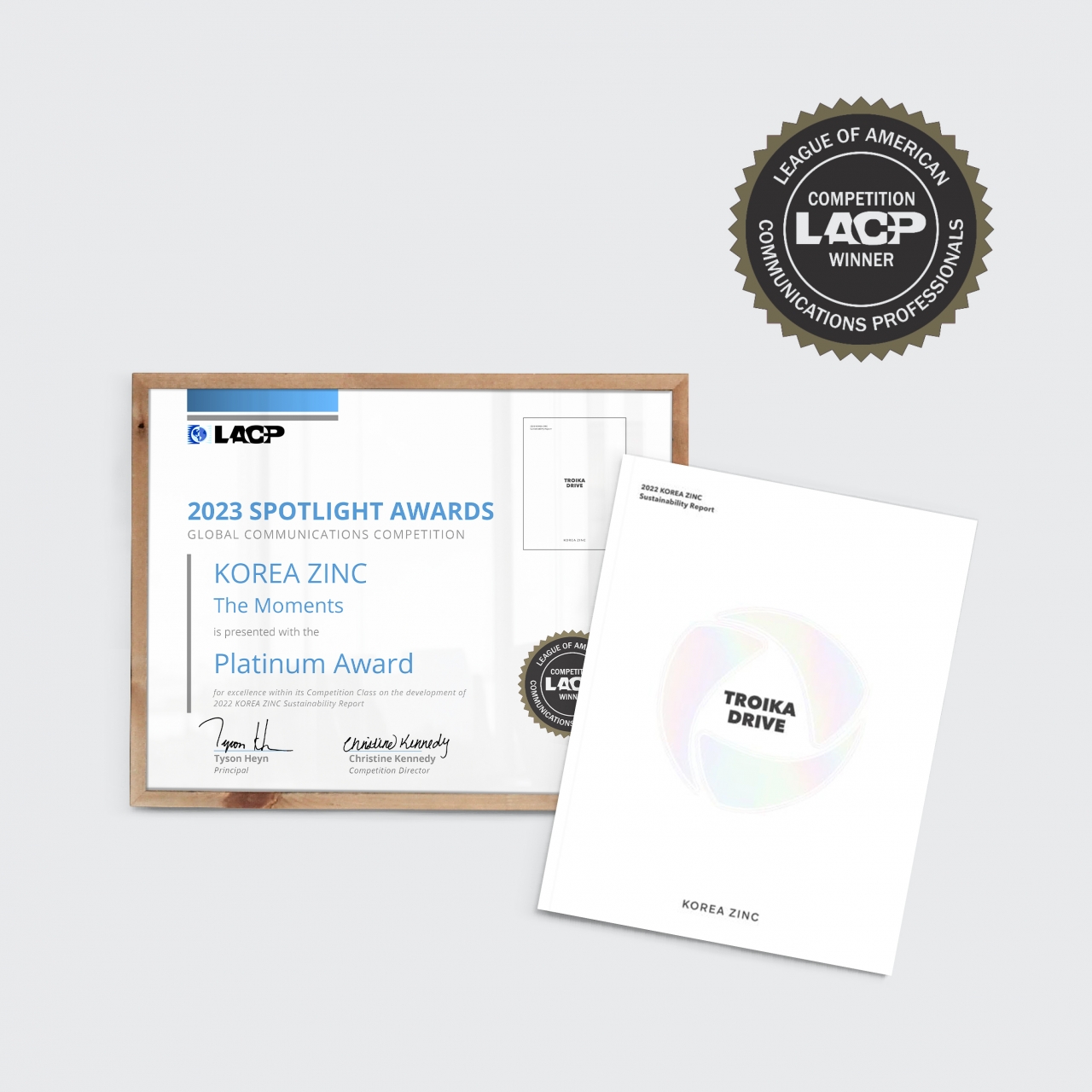 고려아연(회장 최윤범)의 ‘2022 지속가능경영보고서’가 미국 커뮤니케이션 연맹(LACP, League of American Communications Professionals)이 주관하는 ‘LACP 2023 스포트라이트 어워즈(Spotlight Awards)’ 에서 플래티넘상을 수상했다고 23일 밝혔다.