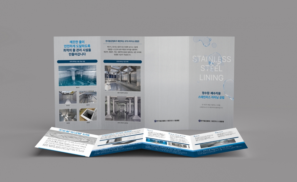 리플렛 형태로 제작된 이번 홍보자료에는 상수도시설의 콘크리트 구조물이 노후화될 경우 발생할 수 있는 벽체 균열, 침출수 유입, 수자원 누수 등의 문제를 반영구적으로 해결할 수 있는 ‘스테인리스 라이닝’ 공법의 시공 방법에서부터 적용되는 소재와 공법의 특징과 자주 하는 질문 등에 대해 항목별로 구분하여 상세하게 안내하고 있다.