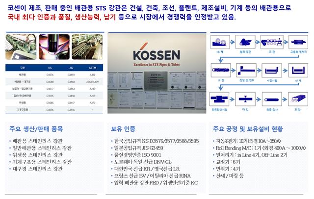 스테인리스 강관(STS Pipe) 제조사 코센(대표 김광수)이 부안공장의 스마트화 추진으로 새로운 성장 동력을 확보하고 있다. 코센은 3정5S(3정은 정품·정량·정위치, 5S는 정리·정돈·청소·청결·습관화) 기반 QSS 활동에 더불어 MES 시스템을 적용한 스마트 팩토리 적용으로 첨단·효율 생산 체계를 구축하고 있다.