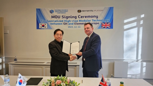 GH는 12~13일(현지 시간) 영국 런던에서 영국 철골 모듈러 전문업체 엘리먼츠 유럽(Elements Europe), 건축 설계사 HTA Design LLP(이하 HTA) 등과 고층 모듈러 주택 기술 교류를 위한 업무협약(MOU)을 각각 체결했다고 14일 밝혔다.
