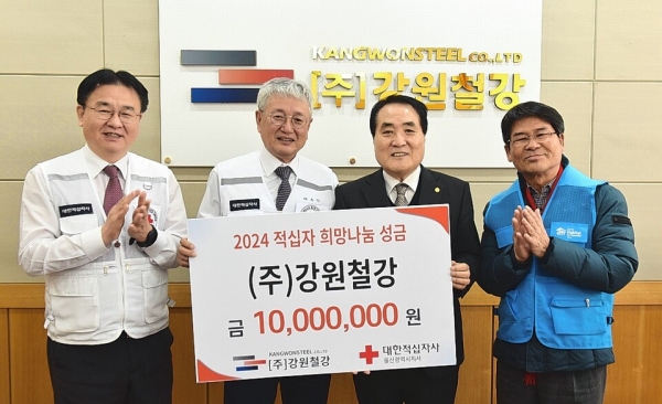 강원철강(대표이사 황종석)은 2024년도 적십자 희망나눔성금 1,000만원을 대한적십자사 울산시지사에 전달하며 희망나눔에 동참했다고 밝혔다.