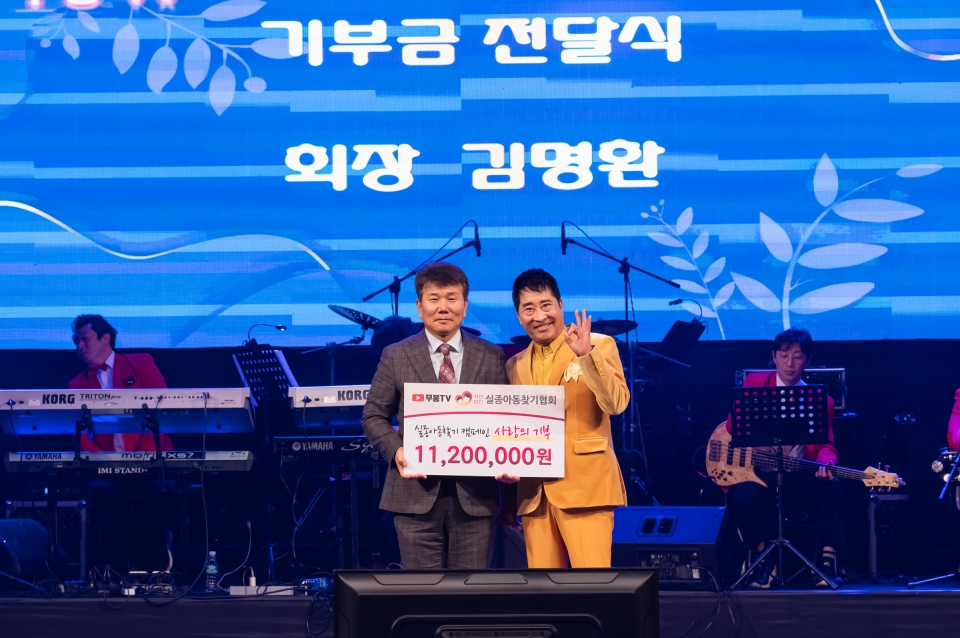 이번 나눔 기부 행사는 김명환 회장이 2023년 1년간 노래 앨범과 자서전을 판매하고 얻은 수익금과 행사 공연 현장에서 발생한 수익금을 포함한 금액 총 1,120만원을 실종아동찾기협회에 기부했다.