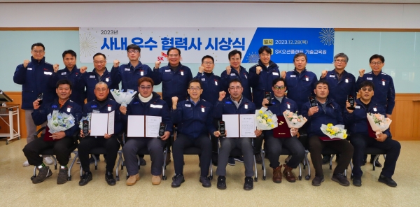 SK오션플랜트는 28일 2023년 한해 함께 땀 흘려 일한 협력사 임직원에게 감사의 뜻을 전하는 한편, 올해 협력사 평가 결과를 공유하기 위해 ‘2023 사내 우수 협력사 시상식’을 가졌다.