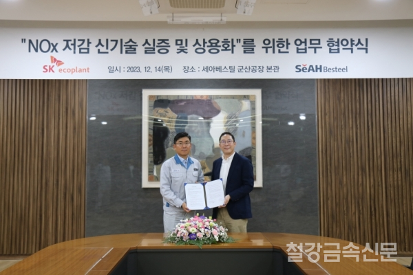 세아베스틸(대표이사 김철희·신상호)이 환경에너지 전문기업 SK에코플랜트와 ‘질소산화물(NOx) 저감 신기술 실증 및 상용화를 위한 협력’ 관련 업무협약(MOU)을 지난해 12월 체결했다.