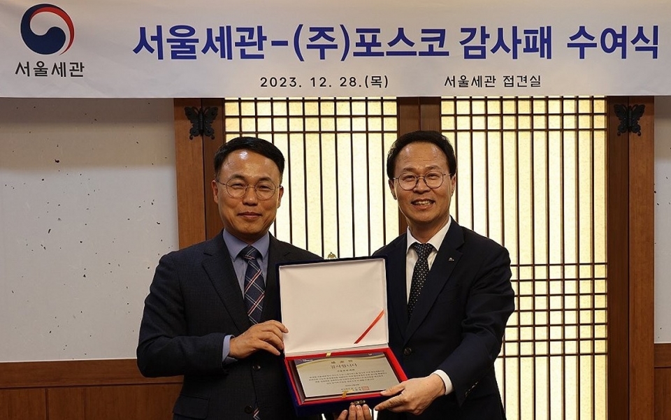 이에 상표 도용 피해 당사자인 포스코는 지난달 28일, 서울세관 4층 회의실을 방문해 서울세관에 ‘K-STEEL’ 가치 훼손 방지에 기여한 공로로 감사패를 전달했다.