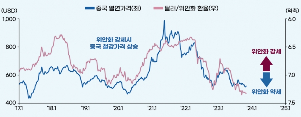 중국은 정부의 경기부양책 등에도 불구하고 내수가 회복되지 못하면서 철강 제품의 재고가 크게 늘어난 상태다. 또한 중국 정부가 감산을 추진하고 있지만 종전과 달리 권고 조치 수준에 그치고 있어 실질적인 감산은 제대로 이뤄지지 못하고 있는 상황이다. 그만큼 공급과잉 정도가 더욱 커지면서 7년 만에 수출량이 최고 수준을 기록하는 등 밀어내기식 수출을 확대하고 있다. 중국 내수 부진에 대한 전망도 어두운 상황으로 이러한 기조가 장기화할 가능성이 큰 상황이다.