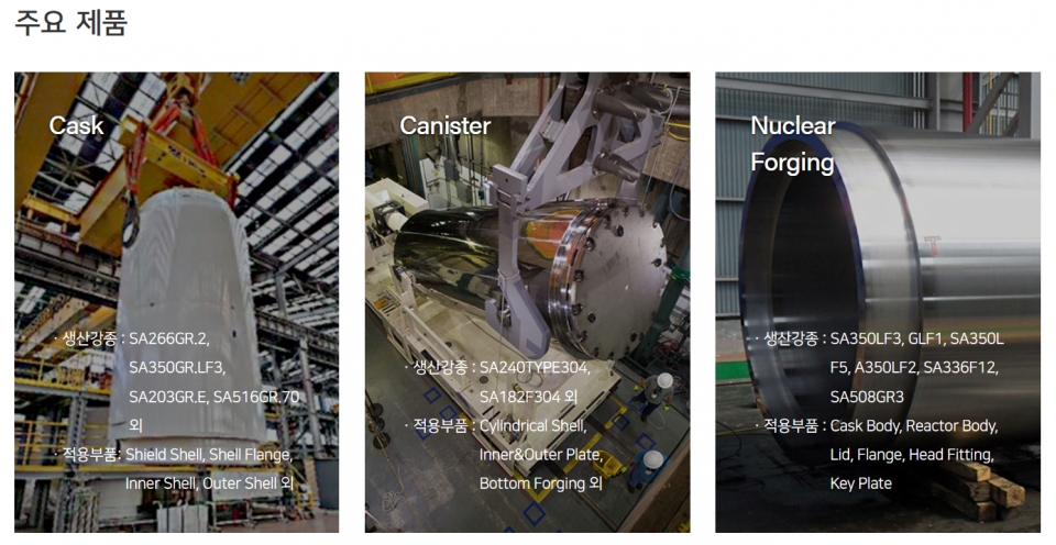 사용후핵연료운반·저장용기(CASK)도 회사가 기대를 갖고 있는 품목이다. 국내 최초로 CASK 완제품 미국 수출과 미국 원자력규제위원회(NRC)의 인증을 획득하였고, 지난해에는 한국수력원자력이 진행한 약 350억원 규모의 CASK 공급업체로 세아베스틸이 최종 선정됐다. 이에 그치지 않고 다른 국내외 CASK 입찰 경쟁에 적극 참여 중이다. 향후 국내 사용후핵연료의 처리를 위한 임시 저장시설도 부족할 것으로 예상되어 CASK에 대한 수요 전망은 매우 긍정적으로 보고 있다.