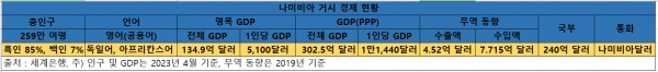 우선 나비미아의 개괄적 경제 현황을 살펴보면 1990년도 남아프리카공화국으로부터 독립된 신생국으로 인구는 260만 명 정도에 불과하다.