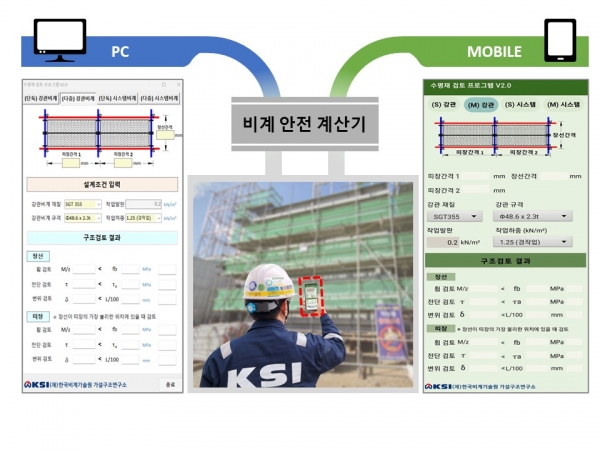 비계안전계산기는 비계의 규격, 기둥간격 및 작업특성 등을 고려해 기둥간격만 입력하면 안전성 여부를 즉시 파악할 수 있도록 프로그래밍돼 있다. 비전문 관리감독자부터 현장 작업자까지 폭넓게 활용할 수 있다.