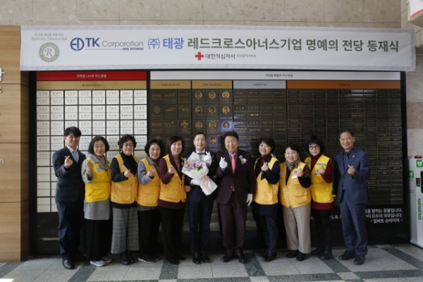 관이음쇠 전문 생산기업 태광(회장 윤성덕)이 대한적십자사 고액기부자 모임인 ‘레드크로스 아너스기업’에 부산 27호로 가입했다. 대한적십자사 부산지사(회장 서정의)는 지난달 29일 태광이 레드크로스 아너스기업에 가입하고 명예의 전당 등재식을 가졌다고 밝혔다. 레드크로스 아너스클럽(RCHC)은 적십자 인도주의 사업을 위해 1억 원 이상 기부하거나, 5년 이내에 기부할 것을 약정하는 고액기부자 모임이다.