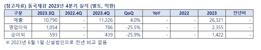 동국제강이 지난해 4분기 잠정 실적을 6일 공시했다.