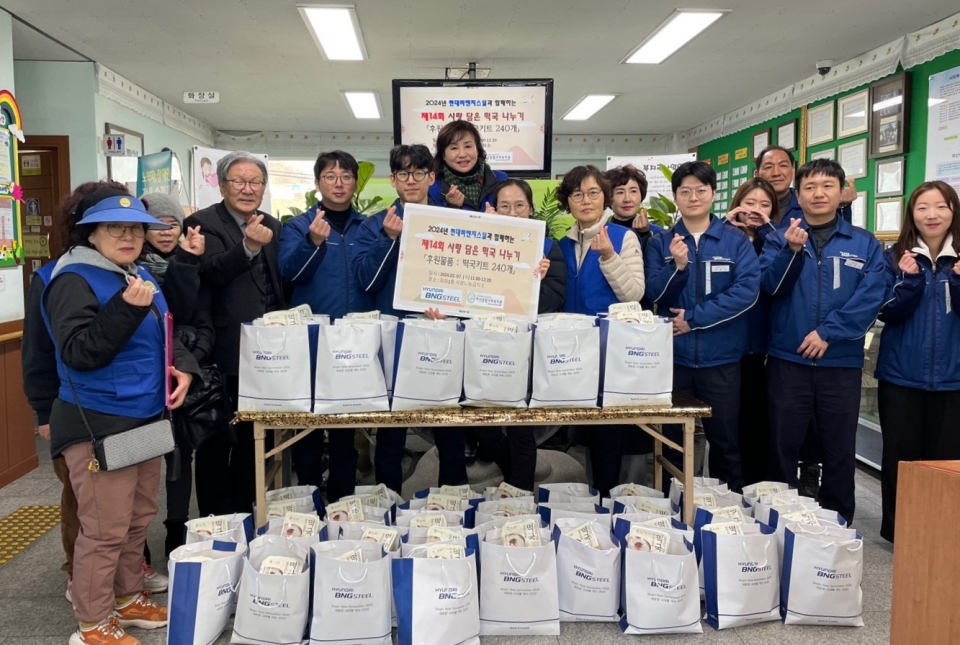 현대비앤지스틸(사장 정일선)이 설맞이 지역 어르신 대접 행사를 개최했다. 현대비앤지스틸은 14년째 해당 행사를 후원·지원하고 있다.