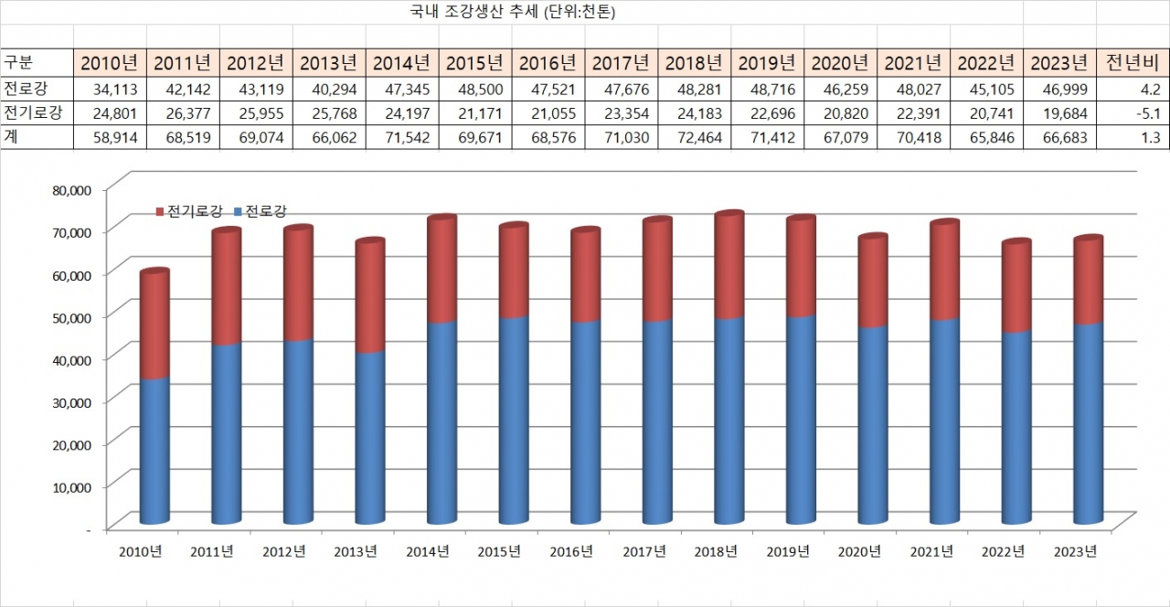 국내 조강 생산 6,668만톤, 전년비 1.3% 증가