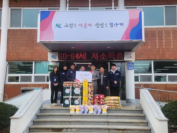 SK오션플랜트 띠앗봉사단은 최근 고성군 동해면사무소를 방문해 독거 어르신 행복 나눔 생필품을 전달했다.