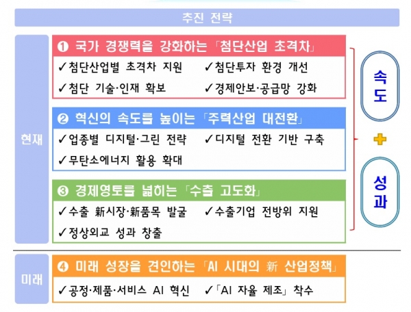 정부는 디지털·AI, 친환경 전환을 통한 新성장동력 창출도 지속적으로 요구되고 있는 만큼 생성형 AI를 필두로 공정·제품·서비스 전반의 디지털 혁신을 추진한다는 계획이다.