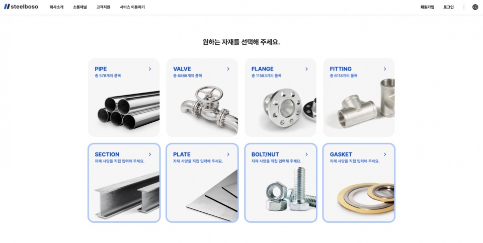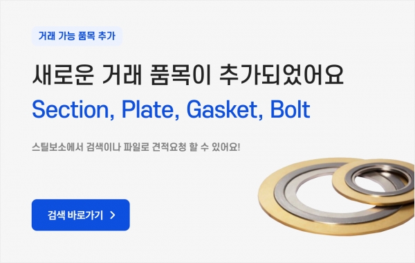 기존 스틸보소에서는 배관재(PIPE, FITTING, FLANGE, VALVE) 외 다른 자재는 거래에 다소 불편함이 있었지만 사용자의 의견을 반영한 서비스 고도화를 통해 SECTION, PLATE, BOLT/NUT, GASKET 등 다양한 품목 카테고리를 온라인 거래 품목으로 추가했다.