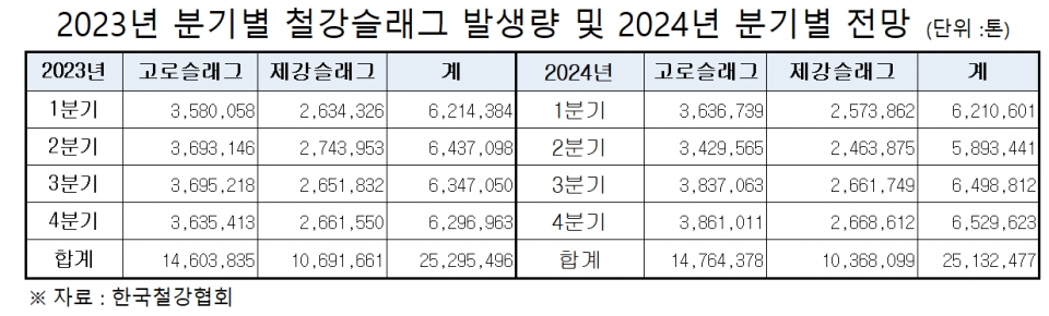 고로슬래그 100%, 제강슬래그 98.7% 재활용 목표...‘도로용’ 물량·비중 늘려