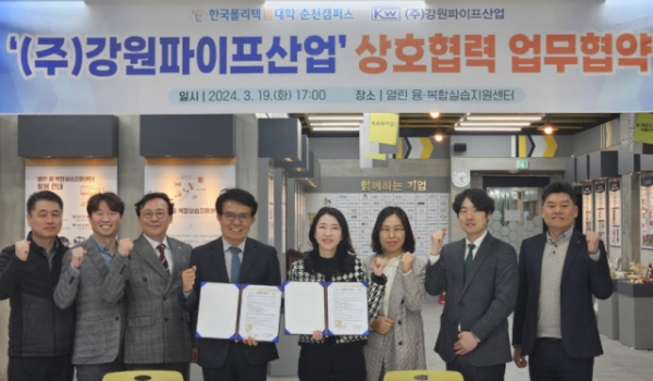 강원파이프산업(대표 이주원)은 한국폴리텍대학 춘천캠페스와 인재양성 지원 및 산학간 협력 증진을 위한 업무협약을 체결했다.
