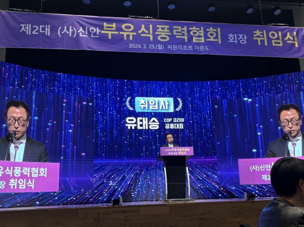 유태승 COP 코리아 공동대표는 취임사에서 "국내·외에서 탄소중립, 에너지전환 및 에너지안보에 대한 요구가 더욱 거세지고 있는 매우 중요한 시기에 국내 해상풍력 산업을 선도하고 있는 신안군의부유식풍력산업협회의 회장사로 선출돼 영광"이라며 "임기 동안 회장사로서 5개 발전사와 기업, 신안군이 함께 힘을 모아 지역 해상풍력사업의 활성화로 신안, 전남 지역 및 국내 다양한 공급망의 구축, 활용 및 지역 사회와 어업인과의 활발한 소통과 협력 강화, 지역 인력양성 통한 신안군의 해상풍력 발전과 지역경제 활성화를 위해 모든 역량을 집중할 것"이라고 전했다.