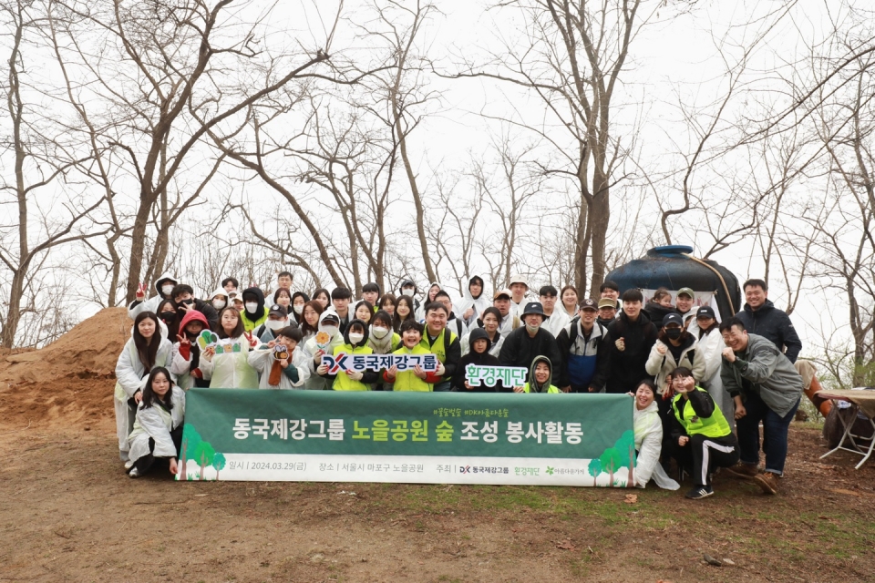 동국제강그룹은 29일 서울 마포구 노을공원에서 임직원 및 직원 가족들과 '동국제강그룹 노을공원 숲 조성 봉사활동'을 진행했다고 밝혔다.