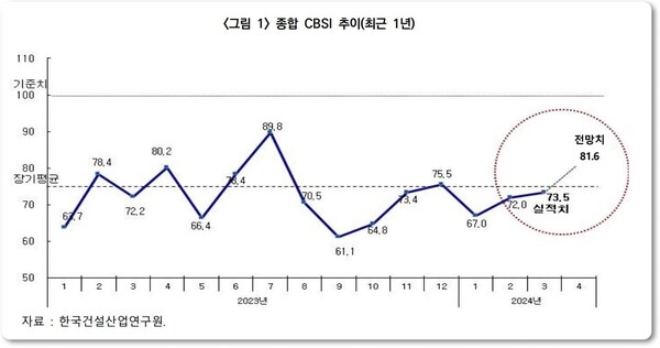 다만, 여전히 기준선 100선을 한참 밑도는 동시에 장기 평균선 75.1(2000~2023년 평균)에도 미치지 못하는 모습이다.