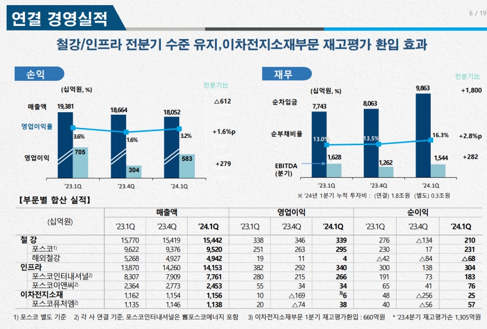 (포스코홀딩스IR) 2024년 1분기 연결·별도 경영실적