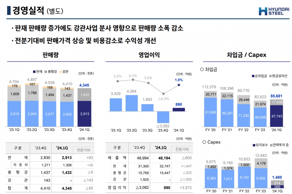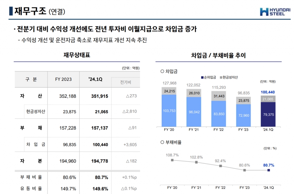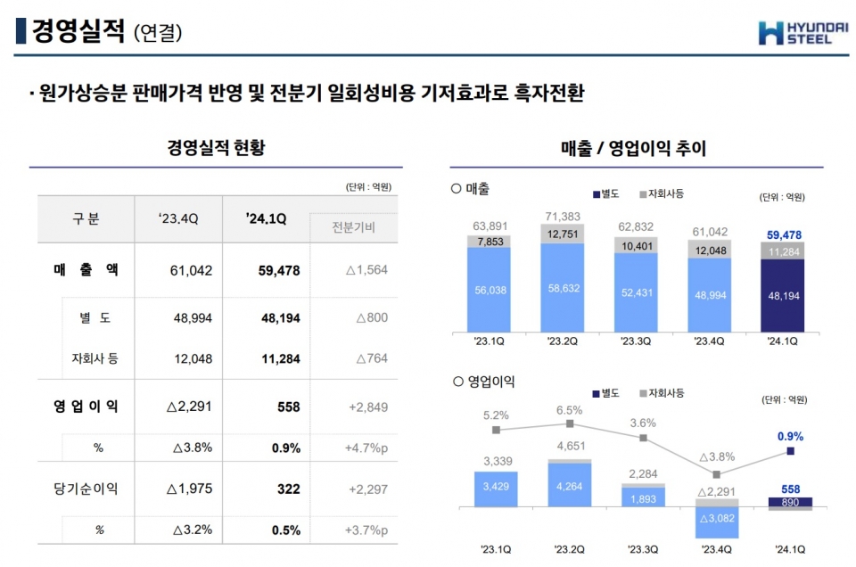 관련기사 (현대제철 IR) 연결/별도 재무제표...손익계산서/재무상태표 현대제철, 수익성 개선 박차…1분기 흑자전환 현대제철, 교통안전 인식 확신 캠페인 실시 현대제철 "저점 지나고 있다"…1분기 흑자 찍고 하반기 '희망적' “현대제철, 자회사 부진으로 예상치 하회”-키움증권