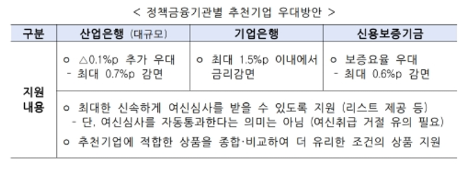 한국산업은행·중소기업은행·신용보증기금 등 3개 기관은 금리우대, 보증비율 우대, 보증료율 지원 등을 제공할 예정이다.
