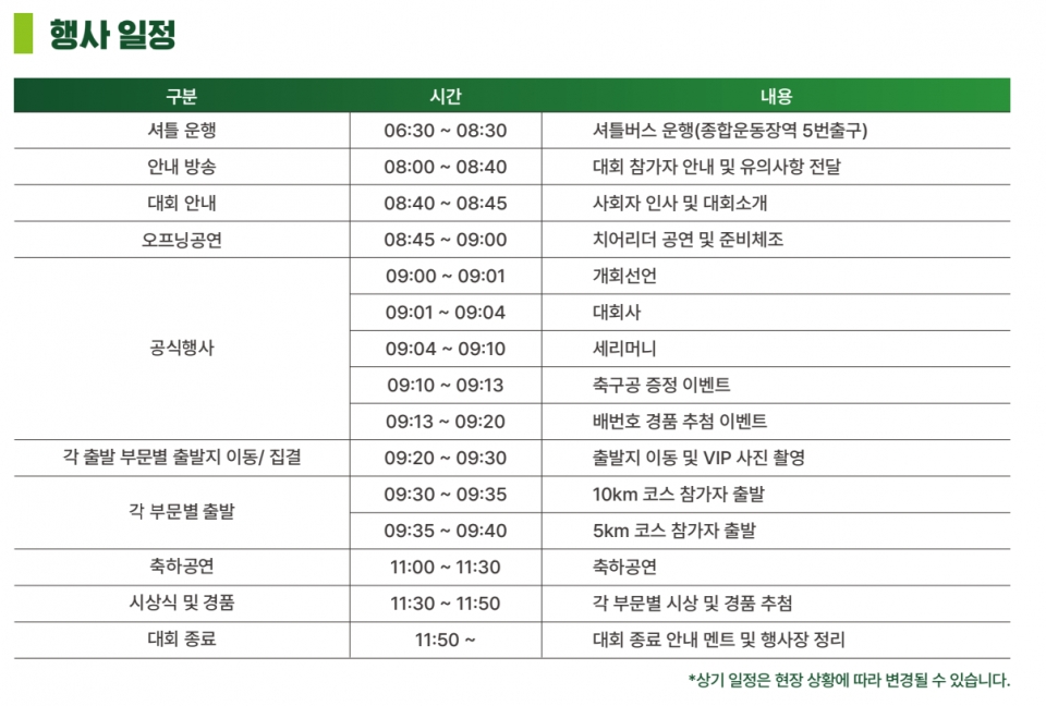 올해 철강마라톤은 이전 대회와 같이 10km 코스와 5km 코스로 나눠 진행된다. 각각 코스에서 성별을 구분하여 3위까지 상장 및 부상이 수여될 예정이다. 또한 참가자 중 번호를 추첨하여 ‘그린철강상’ 수상의 기회도 주어진다.