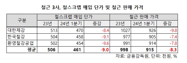 본지가 금융감독원 자료를 통해 대한제강과 한국철강, 환영철강공업 등 철근 전문 제강 3사 경영실적을 집계한 결과, 올해 이들 1분기(1~3월) 매출액은 총 4,510억원으로 전년 동기 대비 34.5% 감소했다.