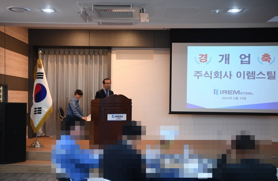 출범 당일 열린 이렘스틸 법인 탄생 기념식에는 회사 임직원과 업계 관계자 등 40여 명이 참석해 신생 STS코일센터 법인 탄생을 축하했다.